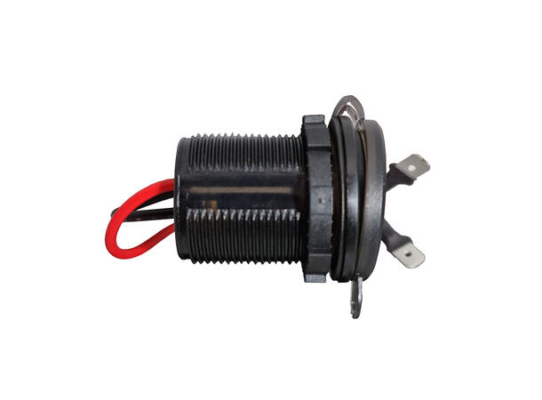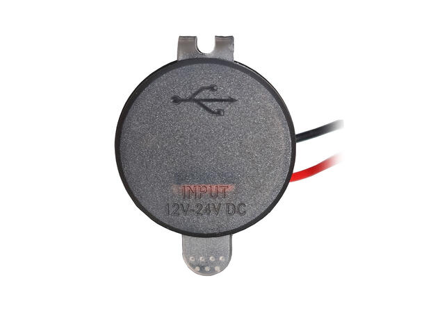 Dobbel USB-lader med spenningsvisning.Kan monteres innfelt i 29 mm åpningFungerer i både 12 og 24 volt anlegg.