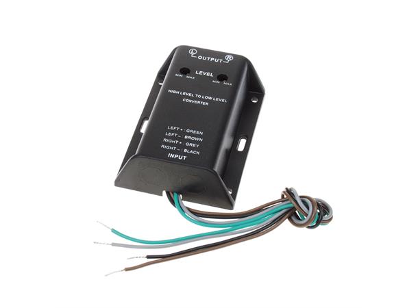 Høy til lav nivå adapter. Gjør om høyttalersignal til phono (rca). 2-kanals.
