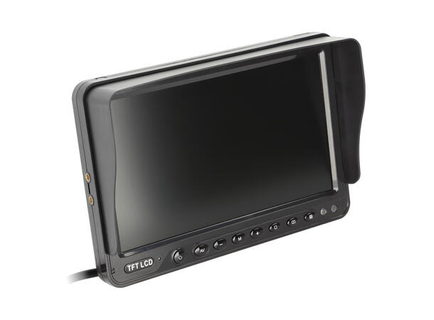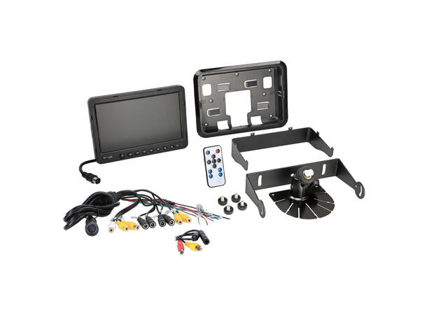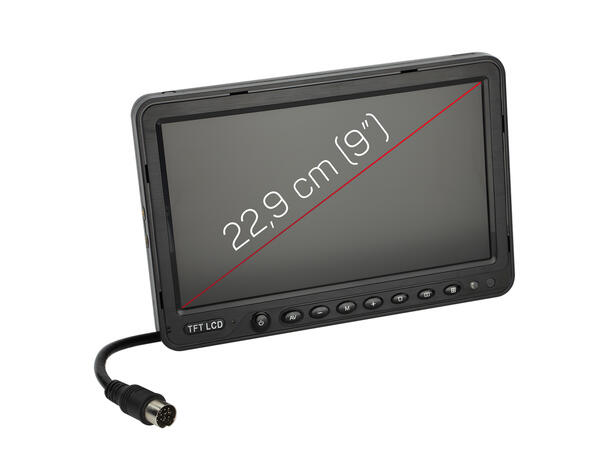 Universal 9" skjerm med fire innganger. Støtter CVBS kameraer.