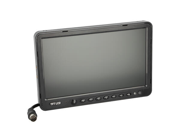 Universal 10" skjerm med fire innganger. Støtter CVBS kameraer.
