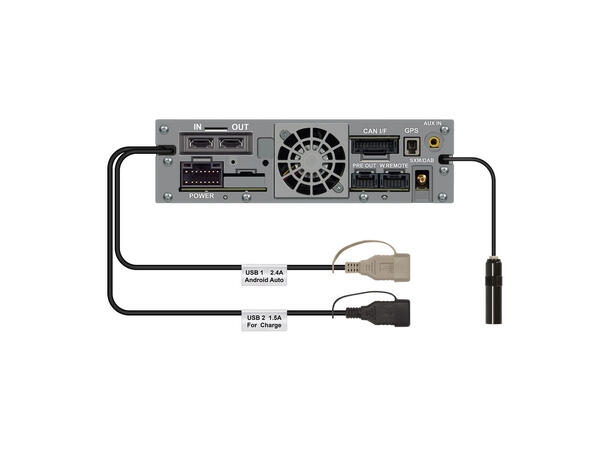 Selv om Alpine iLX-705D er uten mekanikk (ingen innebygd CD/DVD-stasjon), har du fortsatt mange underholdningsmuligheter. 2 USB-porter plassert på baksiden av enheten lar deg for eksempel koble til en mobilenhet for lading, mens den andre USB-porten kan brukes til å plugge inn en USB-pinne eller harddisk for å få tilgang til lyd- og videofiler.