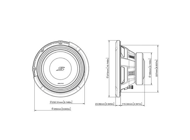 Alpine S2-W10D2. 10" Subwoofer. 2x2 Ohm. 600W RMS. 1800W Maks.