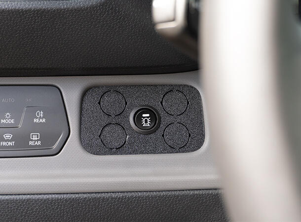 Et integrert bryterpanel som monteres på ett minutt, uten å lage et eneste merke i din Volkswagen ID-Buzz. Passer perfekt i lommen til venstre for fører. Man tar vekk det lille "rommet", og plasseres bryterpanelet i samme åpning. Gjennom hullet til bryteren i midten, skrur du fast senterskruen som fester panelet.