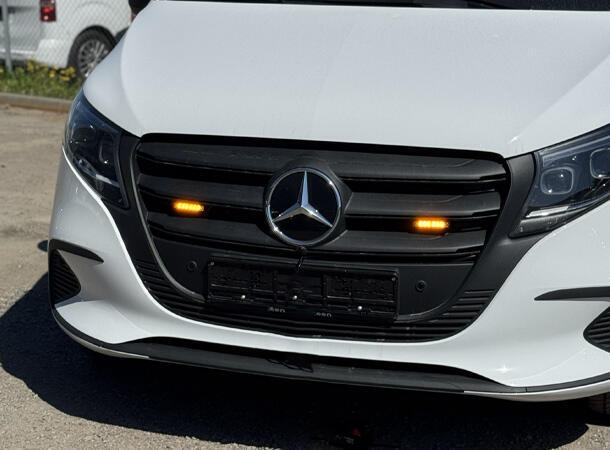 Enkel installasjon av varsellys, innfelt i grillen på Mercedes Vito. Monteres uten å bore i grill, og gir et diskret, integrert og perfekt resultat. Monteres enkelt ved å "klikke" den på plass. Spesialutviklet til Mercedes Vito.