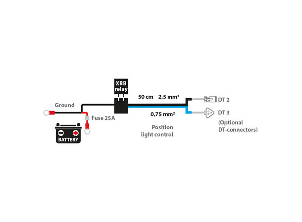 Autoline XBB kabelsett med DT2/DT3 kontakt. 2,5mm² kabel og 25A sikring