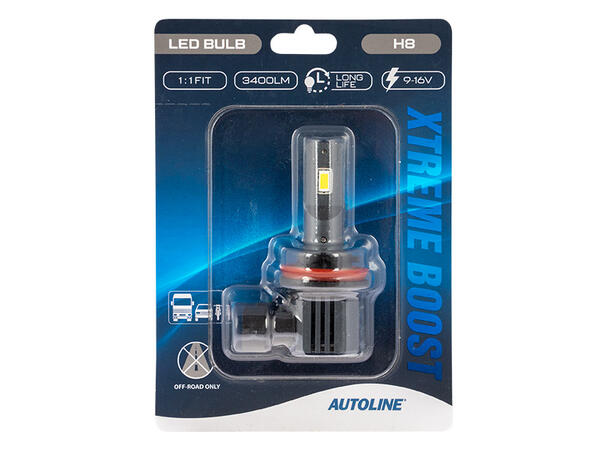 AUTOLINE Xtreme Boost LED H8. 9-16V, 3400 Lumen, Pris per stk