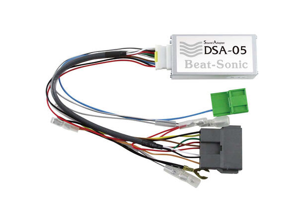 Denne adapteren henter lyd via to utganger fra ettermarkedsradio og man mister muligheten til å justere Fader (separat volum fram og bak) og evt. egen subwooferkontroll.