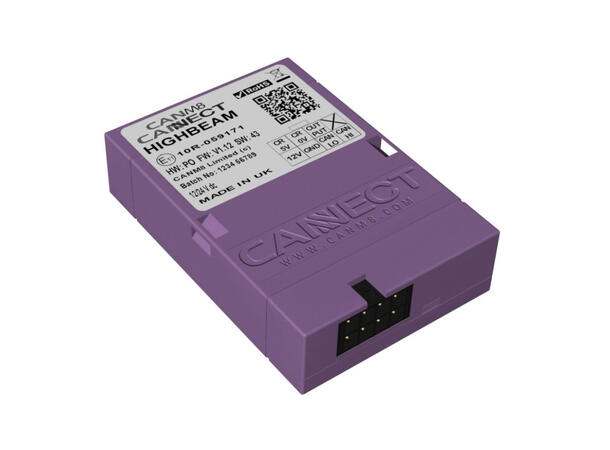 CANNECT-HIGHBEAM leser fjernlysdata i canbus og gir styrestrøm til fjernlysrele.