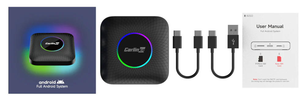 Carlinkit Tbox Max, USB-A til USB-C kabel, USB-C til USB-C kabel, Produktmanual