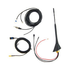 Leveres komplett med 5m kabler for både DAB (med SMB kontakt) og FM (med DIN-kontakt), samt strømkabel.