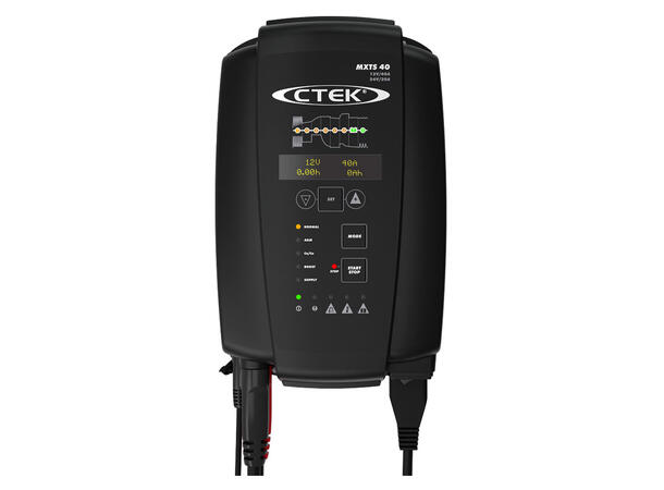 MXTS 40 har en valgbar strømforsyning med dobbel spenning, hver med inkrementelle utgangsspenningsinnstillinger i trinn på 0,4V (12V-innstilling) eller 0,8V (24V-innstilling). Dens konstante, nøyaktige spenningsinnstillinger betyr at komplekse diagnose-, reparasjons- og omprogrammeringsprosedyrer kan utføres raskt og sikkert uten frykt for skade på sensitiv kjøretøyelektronikk. MXT 40 har automatisk parallellbelastningskompensasjon som sørger for at strømforsyningsspenning og strømstyrke alltid er konstant og korrekt, selv om batteriet er utsatt for en ekstra belastning. Sammen med rask, helautomatisk 8-trinns lading og temperaturkontroll for alle værforhold er MXTS 40 alt-i-ett 12V og 24V batteristøtte samt lade- og vedlikeholdsverktøy for verkstedet.
