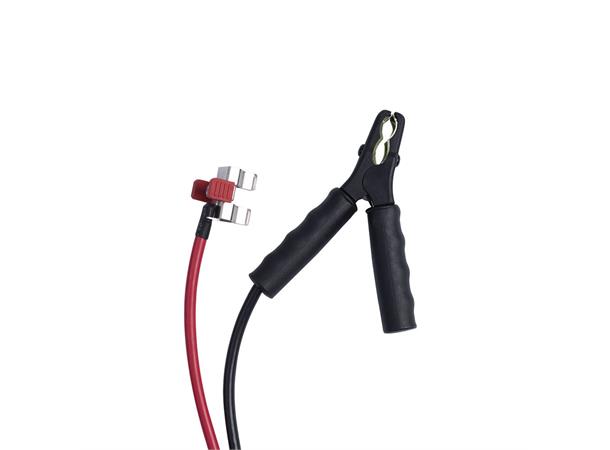 Effektiv, brukervennlig og diskret lader for bilforhandlere. Hold dine biler ladet og klare, uten at kundene merker noe. Den kommer med en spesialklemme på plusskabelen som skal settes på bilens 12V tilkoblingspunkt. Dette muliggjør lukking av panser med lader tilkoblet.