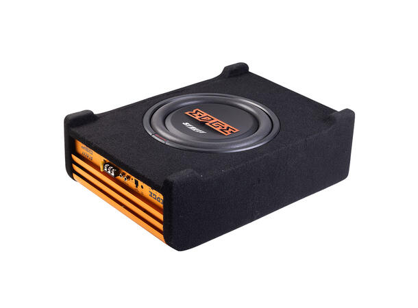 Digital forsterker med 300W RMS effekt i kombinasjon med en svært effektiv subwoofer gir et imponerende resultat til prisen. Forsterkeren er integrert i kassen med aluminium kjøleribber som gir en effektiv avkjøling.