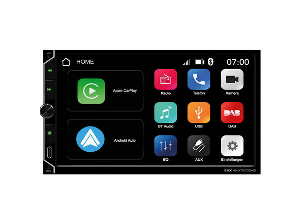 ESX 2 DIN Multimediaspiller med 17,8cm (7") touchskjerm, DAB+, Trådløs Apple Carplay, Trådløs Android Auto, USB-C, Bluetooth og 4 volts linjeutganger.