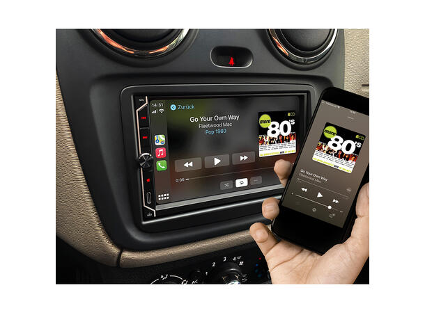 - Kompatibel med Apple CarPlay® eller Android Auto™ (Trådløst og USB)