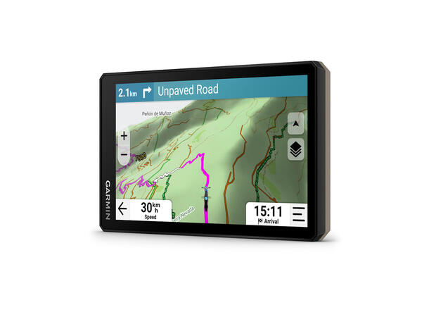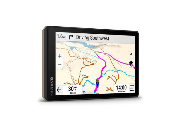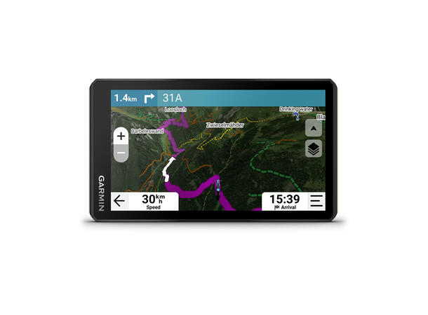 Navigasjonsenheten med en høyoppløselig, svært klar og hanskevennlig berøringsskjerm på 6? er spesiallagd for å tåle ekstreme temperaturer og ekstreme værforhold (IP67-støv-/ vanntetthetsvurdering) for robuste terrengopplevelser. Den oppgraderte prosessoren sørger for raskere ytelse, blant annet for karttegning og ruteberegninger.