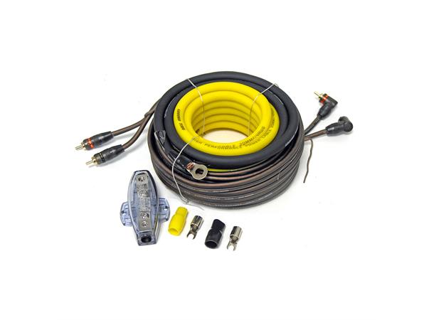Ground Zero 20mm2 kabelsett og 5 meter 2,5mm2 høyttalerkabel følger med i pakken