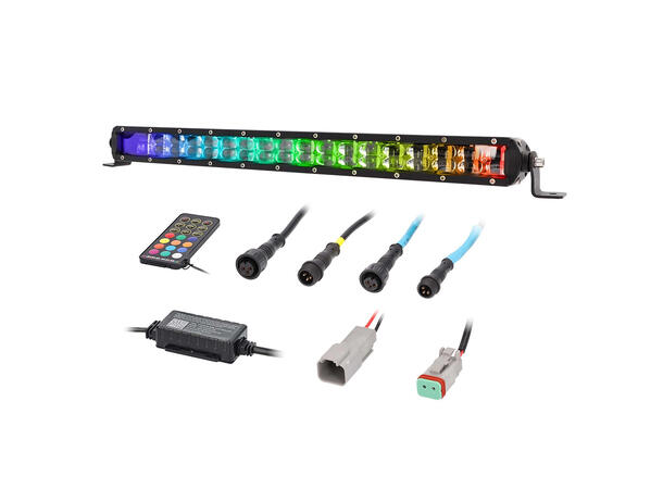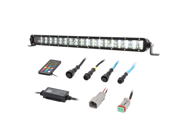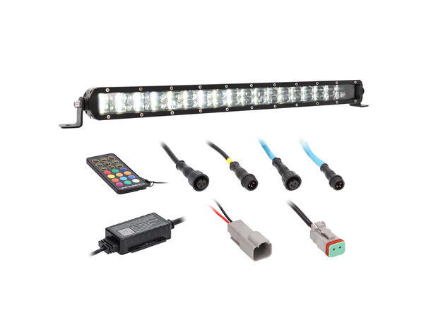 Denne 22" LED-baren er konstruert av høykvalitets støpt aluminium med en forseglet membran og en slitesterk polykarbonatlinse. Den lyser med en blanding av kraftige hvite LED og adresserbar RGB bakgrunnsbelysning. Dette produktet leveres med en Heise Connect Chasing Controller og kan fjernstyres ved hjelp av Heise Connect-mobilappen eller den medfølgende fjernkontrollen.