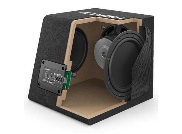 Denne aktive subwooferen i Hertz Dieci serien innehar et aktivt 8" basselement på 220W RMS. Selve kassen er bygget i 18 mm MDF, og forsterkeren er lett tilgjengelig på baksiden for justeringer.
