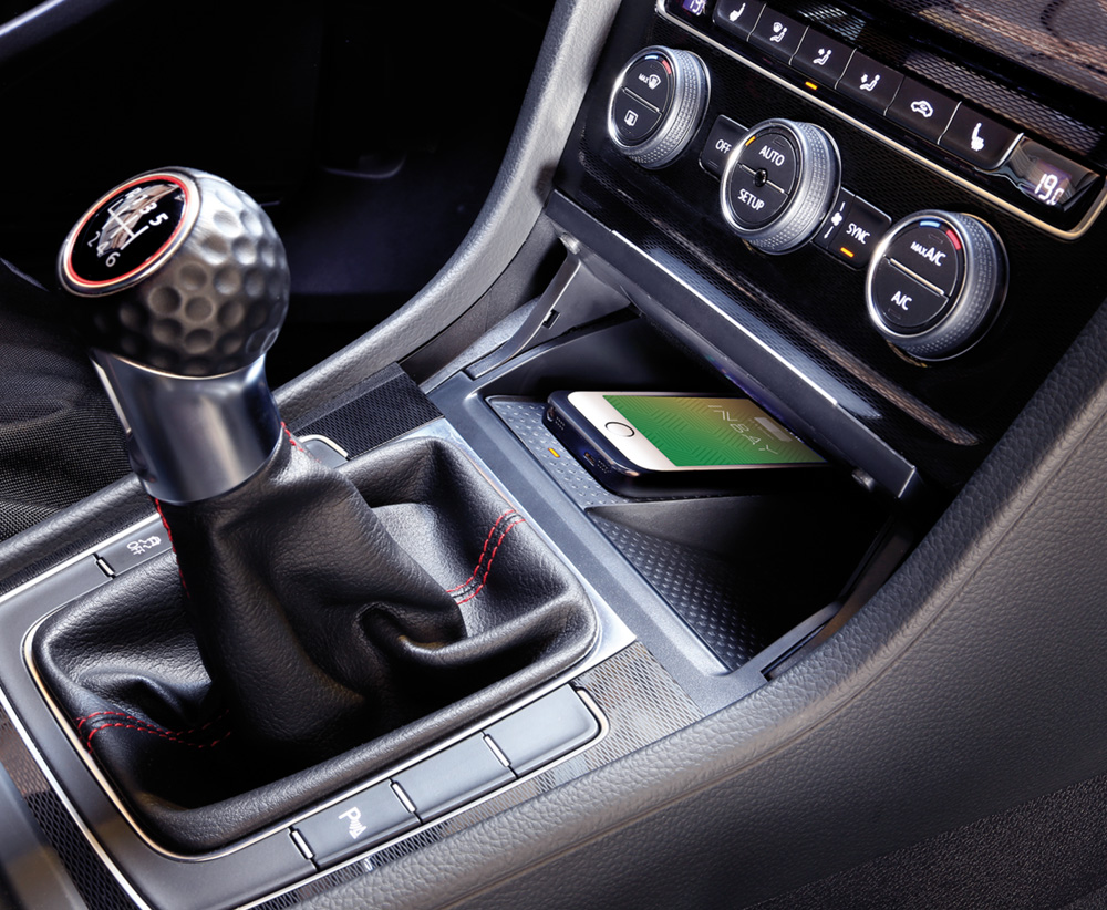 Trådløs induktiv mobillader (Qi). Komplett sett for trådløs lading av mobiltelefon. Passer til VW Golf 2013 - 2020