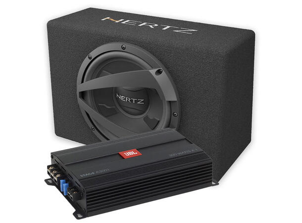 Basspakke med Hertz DBX30.3 12" basskasse og JBL 300W monoforsterker.