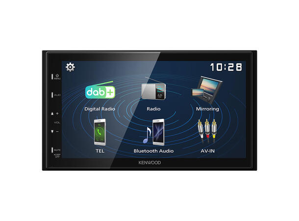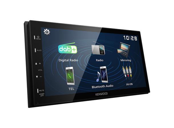 A/V Hovedenhet med 6,8" kapasitiv skjerm, DAB+, Bluetooth og short-body. Etterfølgeren til Kenwood DMX125DAB