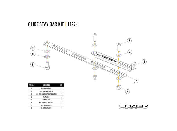 Disse støttestagene er laget for at du skal kunne stabilisere ekstralysene enda bedre. Passer rett på baksiden av Lazer sin Glide serie lykter.Støttestaget er festet til lampen ved hjelp av den medfølgende braketten, før den festes til monteringsstedet på kjøretøyet, og reduserer dermed vibrasjoner, stress og bevegelser som kan påvirke enkelte lysinstallasjoner. De kommer i sort farge og er rustfrie med lang holdbarhet.