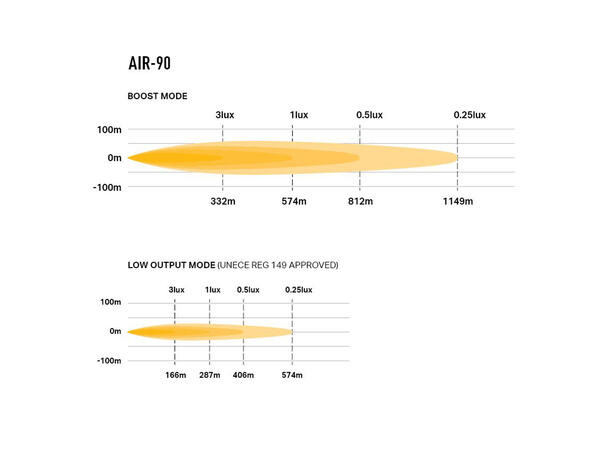 Bortsett fra det ekstremt gode fjernlyset, har alle AIR-produktene et integrert dobbelt hvitt eller gult posisjonslys. Ved bruk av det hvite posisjonslyset er den godkjent i henhold til UNECE Reg148-standarden.