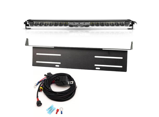 Med i pakken følger det med 1 stk Lazer Glide Elite, skiltbrakett og kabelsett med réle. På noen biler trenger man canbusadapter for å hente ut fjernlyssignal. Adapter ligger under tilbehør.