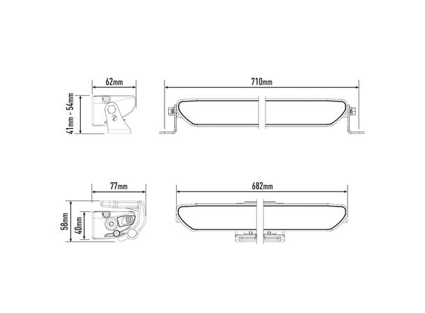 Siden lampen kun er 4cm høy så stjeler den nærmest ingen sikt for maskinføreren, noe som ofte har vært en problemstilling med større LED-barer. Med en fleksibel montering med sine justerbare sidebraketter kan man montere lampen nærmest hvor enn man ønsker. Senterbraketter fåes kjøpt utenom. Se tilbehør.