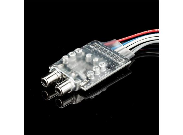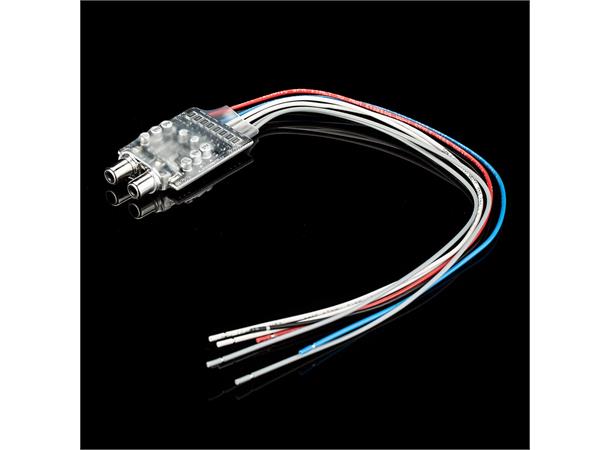Plasseringsvennlig høy til lavnivåadapter. Designet for å ta minst mulig plass. Innebygd belastningsmotstander for biler med høyttalerovervåkning slik at man omgår problemene relatert til OEM radioer.