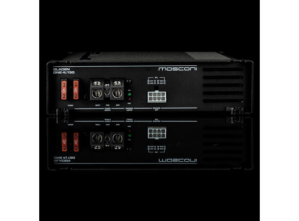 MOSCONI ONE 4|130 er en 4-kanals høykvalitetsforsterker med klasse AB-teknologi. Det er den ideelle forsterkeren for høyttalersystemer og/eller mellomstore subwoofere. ONE 130.4 er utformet som en dobbel stereoforsterker, men kan også betjenes i tre-/ eller tokanalsmodus. Denne forsterkeren er kraftig og har takket være den analoge Full Mosfet-teknologien enestående lydegenskaper.