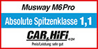 M6PRO 6-kanals DSP-forsterker er rettet mot ekte lydentusiaster som ikke ønsker å installere enkle plug+play-oppgraderinger for fabrikksystemer, men foretrekker skreddersydde bilstereosystemer med høyere ytelse. Det er verdt å merke seg at M6PRO-versjonen knapt er større enn M6 plug+play-versjonen, til tross for en økning i ytelse på over 400 watt. Med kompakte mål på 16 x 25 cm forblir den kraftigere Pro-versjonen nesten identisk med den vanlige M6. Så god som den vanlige M6 allerede er, går PRO-versjonen et skritt videre. Med imponerende 6 x 142 watt ved 4 ohm og 6 x 249 watt ved 2 ohm, er den den kraftigste 6-kanals DSP-forsterkeren som noen gang er målt i Car&Hifi-testlaboratoriet.