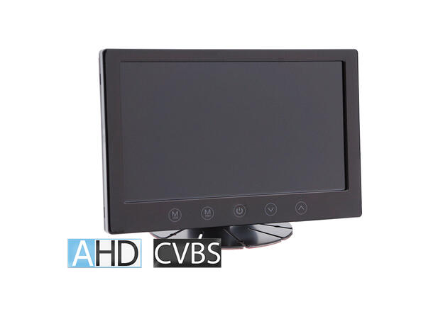 Høyoppløselig digital 9-tommers 16:9-skjerm med 2 videoinnganger som har trigger mulighet. AHD (720P og 1080P) og CVBS, NTSC og PAL kompatibel. Inkluderer stativ, integrert høyttaler og avstandslinjer som kan aktiveres.