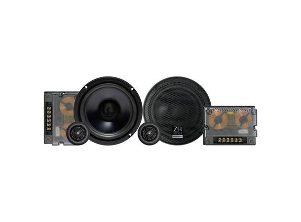 ZR-serien 6,5" komponenthøyttalere. Høy effekt med svært høy kvalitet og detaljer. Dette er essensen av Phoenix Gold. Dette høyttalersettet vil ikke skuffe audiofile eller folk som ønsker å spille høyt samtidig. 6,5" høyttaleren har en sort anodisert aluminiumsmembran med spesialbehandling for å være så stiv som mulig uten resonans. Diskanten er på 1" (25mm) med silke dome. Delefilteret er delt på 4500Hz og har justering 0dB eller -3dB.
