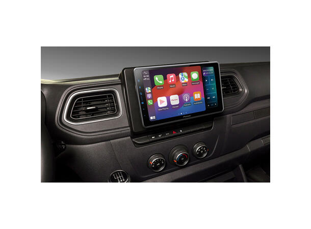 Spesialtilpasset hovedenhet med 9" kapasitiv "floating screen". Skjermen "svever" på utsiden. Renault Master