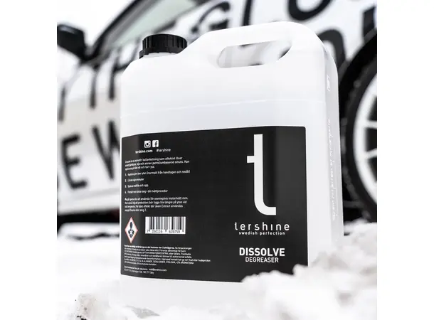 Tershine Dissolve Kaldavfetting. 5L. Aromatisk fri kaldavfetting som effektivt løser opp asfalt, tjære, olje og annen petroleumsbasert smuss.