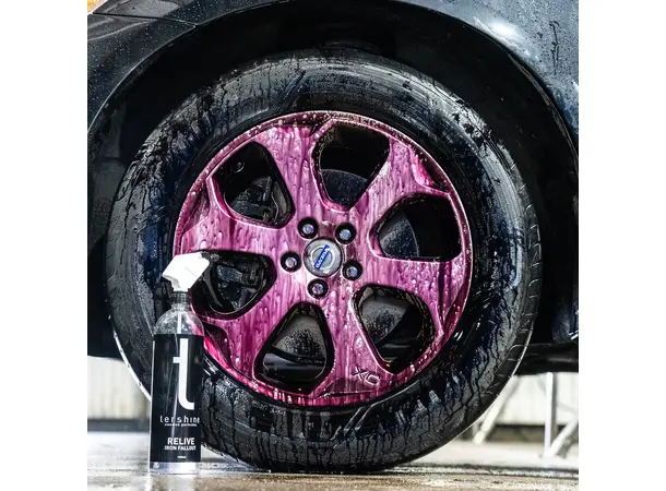 Tershine Relive Flyverustfjerner. 1L. Flyverustfjerner og felgrens som enkelt fjerner bremsestøv og andre metallpartikler som har havnet på kjøretøyet ditt. Blir lilla når den er klar til å skylles av!